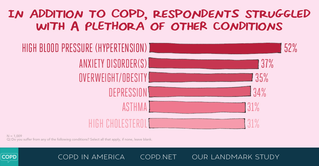 We know exercise can be one of the hardest things for someone with COPD. As a result, high blood pressure and obesity were common additional conditions reported by respondents.