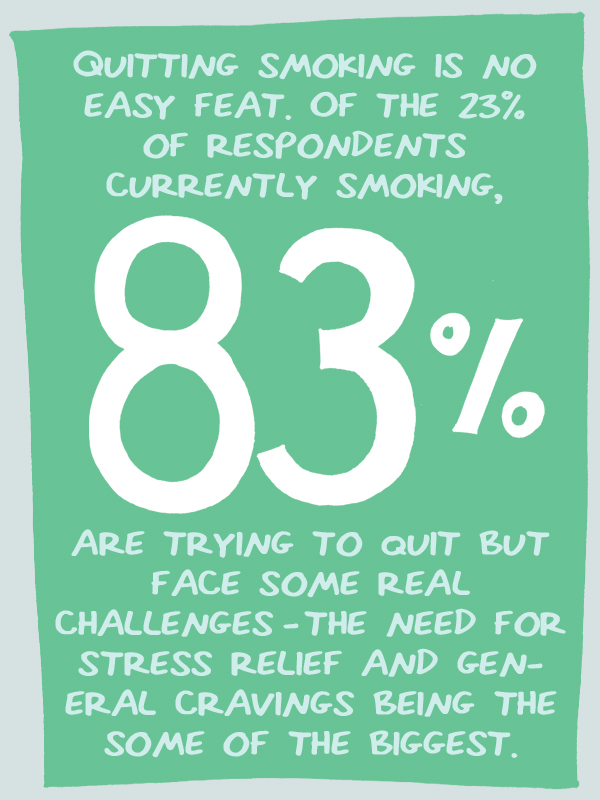 9% of respondents had never smoked, and of those who had, 89% have managed to quit!